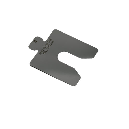 304 Stainless Steel Precut Shim .002" thick x 3" x 3" with 25/32" slot and a tab ( pack of 20 shims)