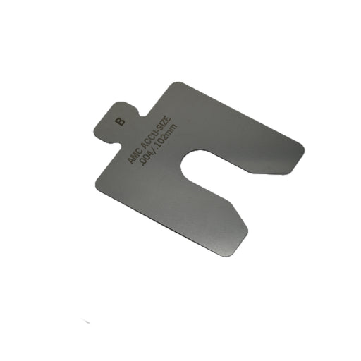 304 Stainless Steel Precut Shim .004" thick x 3" x 3" with 25/32" slot and a tab ( pack of 20 shims)